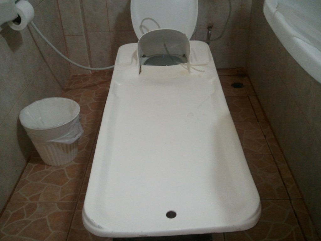 The colema board sits on a stool at one end, and on the toilet seat at the other. The tube goes up to a bucket hanging from the ceiling with a mixture of coffee and apple cider vinegar, and it looks like this;